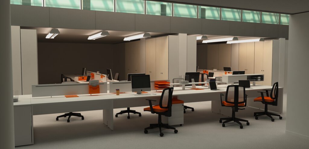 Um escritório empresarial é um espaço que combina funcionalidade, estética e eficiência para criar um ambiente de trabalho que auxilie no desempenho produtivo e na colaboração.