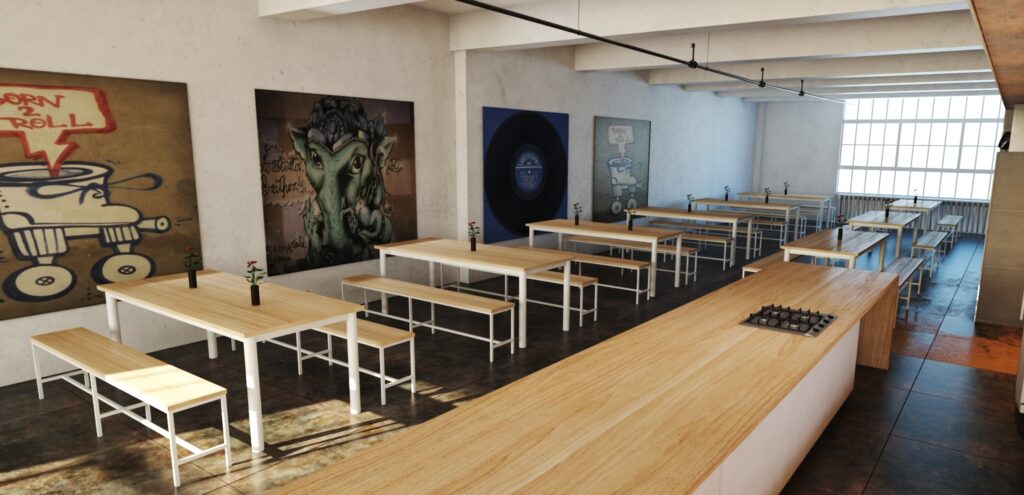 Já as mesas devem ser espaçosas o bastante para acomodar pratos, utensílios e outros itens pessoais dos funcionários, permitindo que eles desfrutem da sua refeição sem se sentirem apertados ou desconfortáveis.