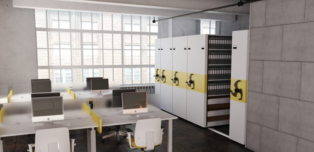 Com o ARQUIVO DESLIZANTE da WORK SOLUTION, você acomoda em uma mesma área o volume de aproximadamente 3x mais o que se colocaria com arquivos convencionais. Dessa forma, você ganha espaço, economiza no m2 e surpreende com a elegância.