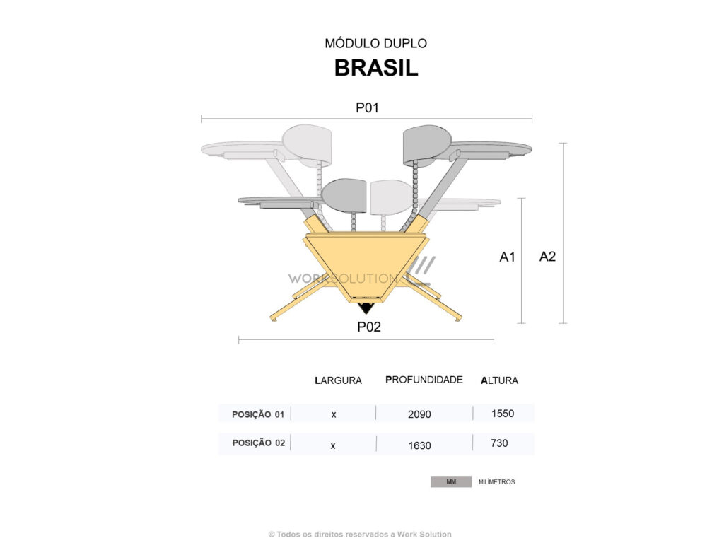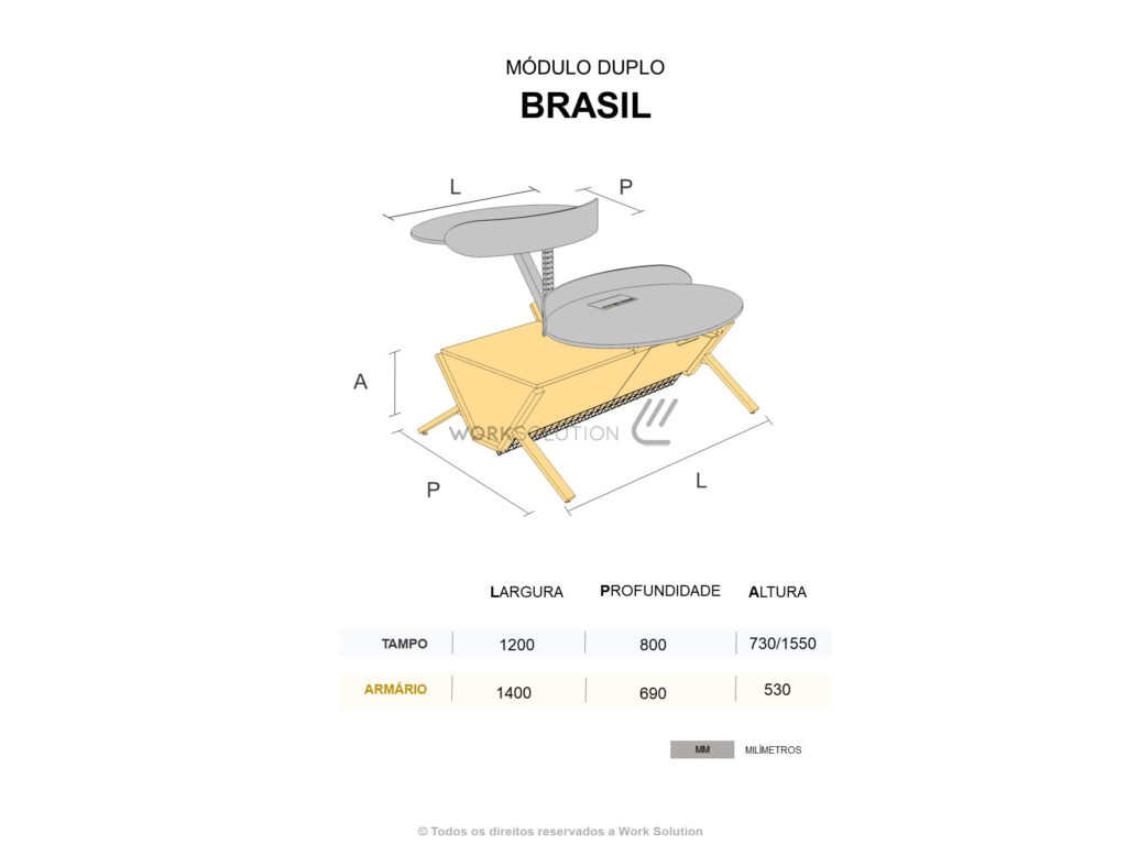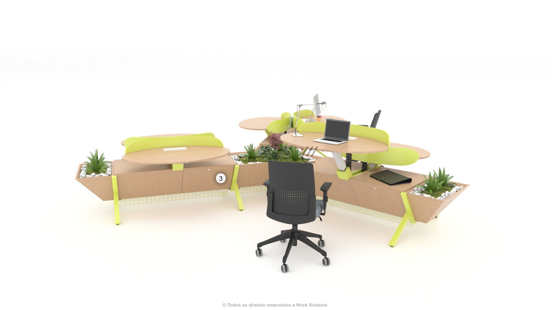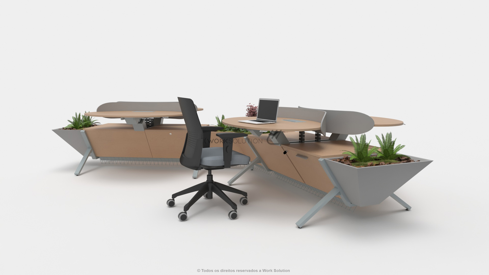 Simule o funcionamento scrollando o botão do mouse. Nesse caso, o acesso do cabeamento até a caixa de conectividade é via vertebra. IMPORTANTE: Para as versões com ajuste de altura, eleve todos os tampos ao nível máximo para dimensionar o tamanho dos cabos (elétrica e dados). Recomendamos deixar uma pequena folga de fio.