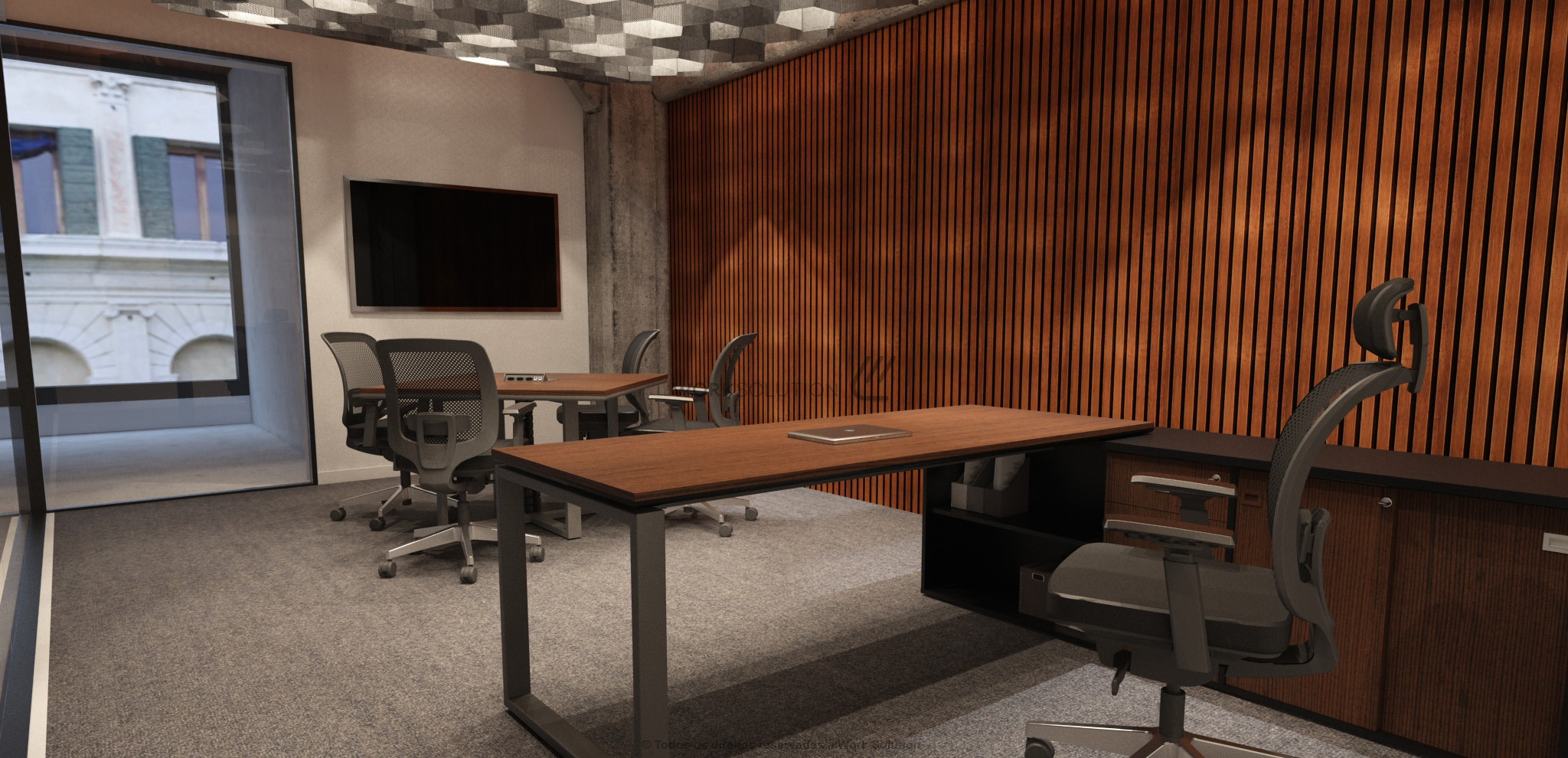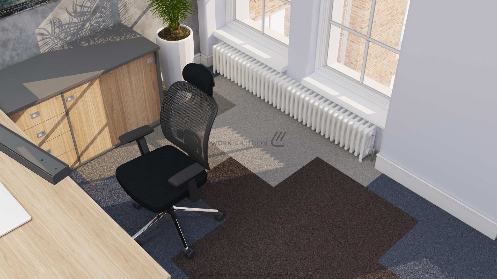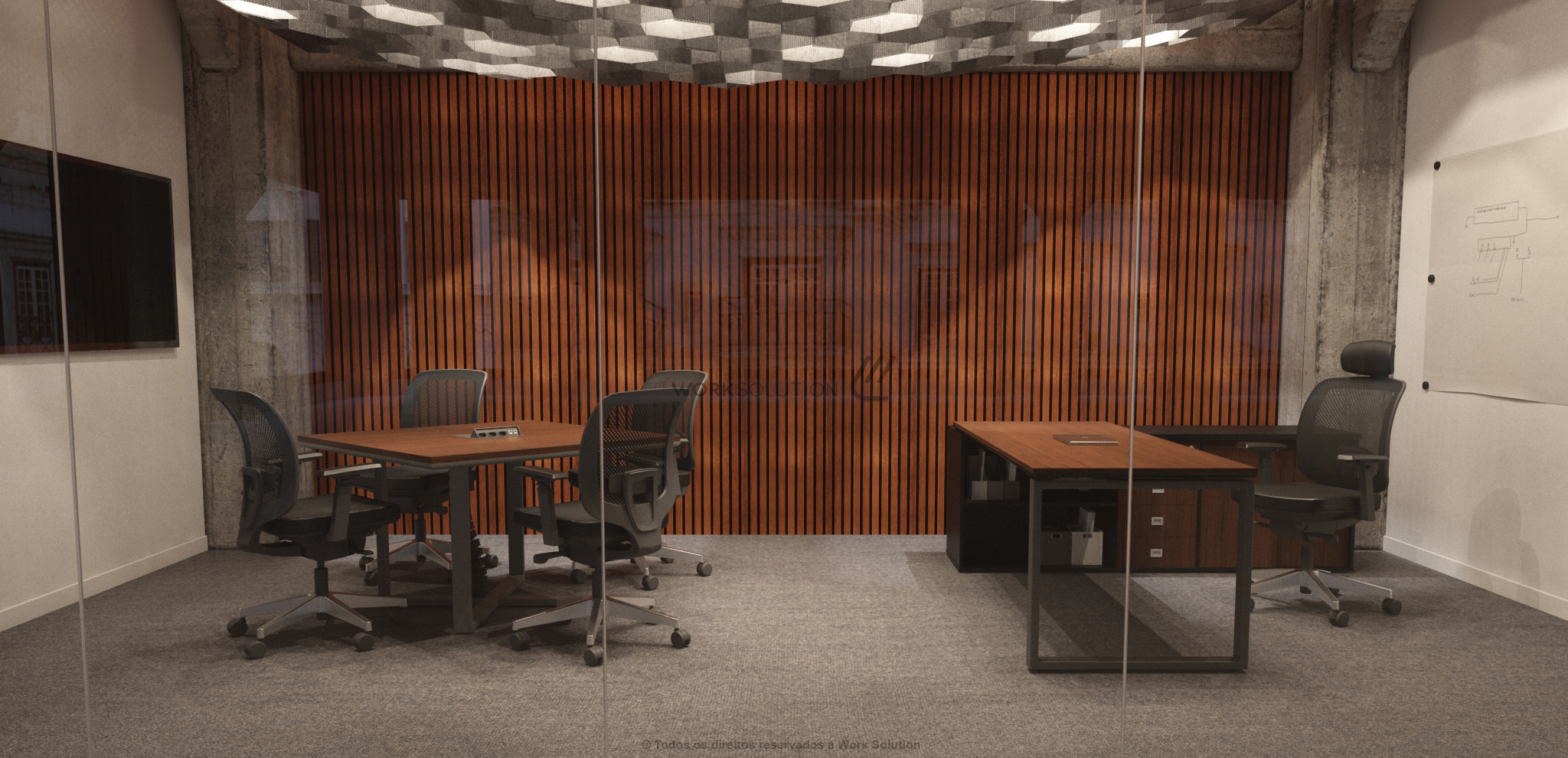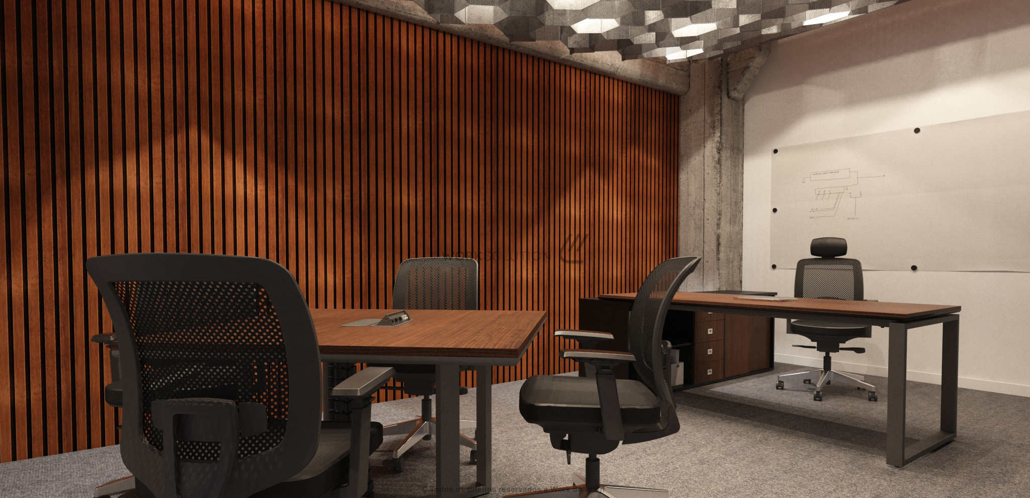 Quando se trata de otimização de espaço, a mesa executiva da linha WS 1000 é perfeita, pois concentra uma ampla superfície de trabalho e diversos módulos de arquivos. Simule o funcionamento clicando nos botões abaixo da imagem.