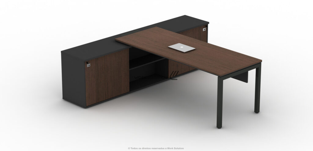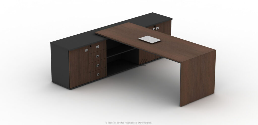 Mesa Executiva com espaço dedicado para maletas, bolsas e arquivos diversos